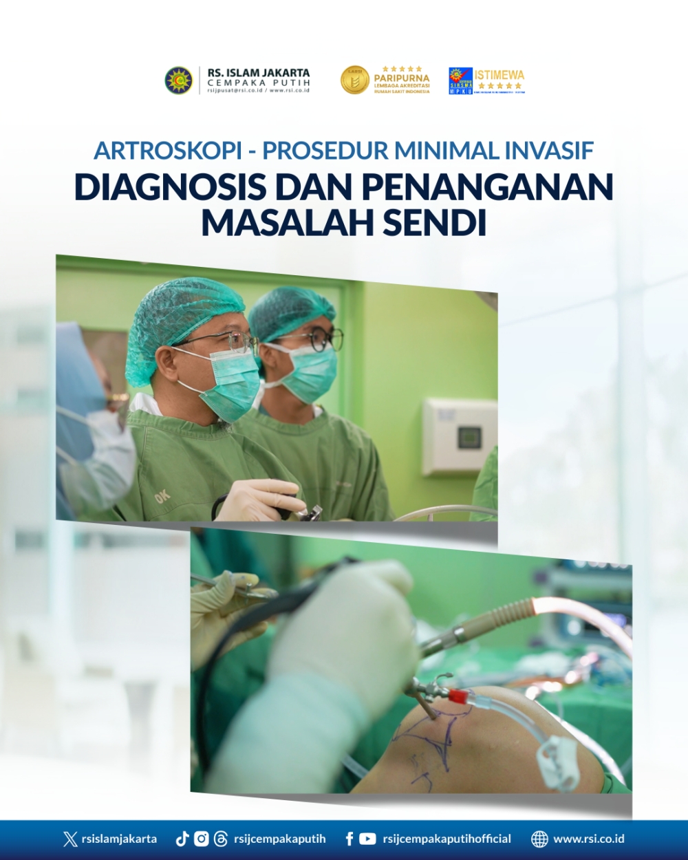 Artroskopi merupakan prosedur yang aman, efektif, dan modern untuk menangani berbagai kelainan sendi. Setiap sendi memiliki teknik dan fokus tindakan yang berbeda sesuai struktur anatomi dan jenis cederanya. Dengan pemahaman yang tepat dan konsultasi dengan dokter ortopaedi, pasien dapat memilih penanganan terbaik untuk memulihkan fungsi sendi dan kembali beraktivitas normal.