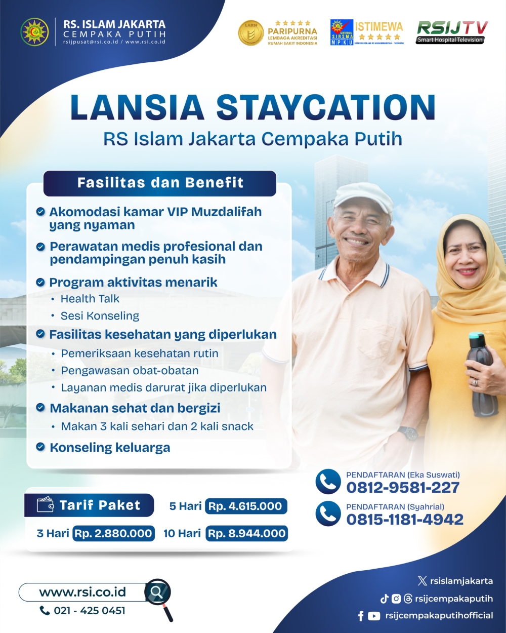 Di hari raya yang penuh rahmat, mari memberi hadiah terbaik bagi ayah dan bunda yang memasuki masa lansia dengan program *"Lansia Staycation"* selama libur Lebaran.