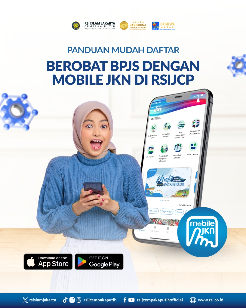 Melalui Mobile JKN, pasien BPJS dapat mendaftar pelayanan rawat jalan di RS Islam Jakarta Cempaka Putih dengan lebih cepat, praktis, dan tertib tanpa harus menunggu lama di loket pendaftaran.