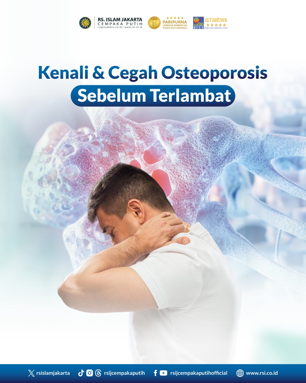 Jaga kekuatan tulang mulai hari ini, demi Langkah yang kuat di masa depan! Segera lakukan pemeriksaan dan konsultasi di RS Islam Jakarta Cempaka Putih, karena mencegah lebih baik daripada mengobati.