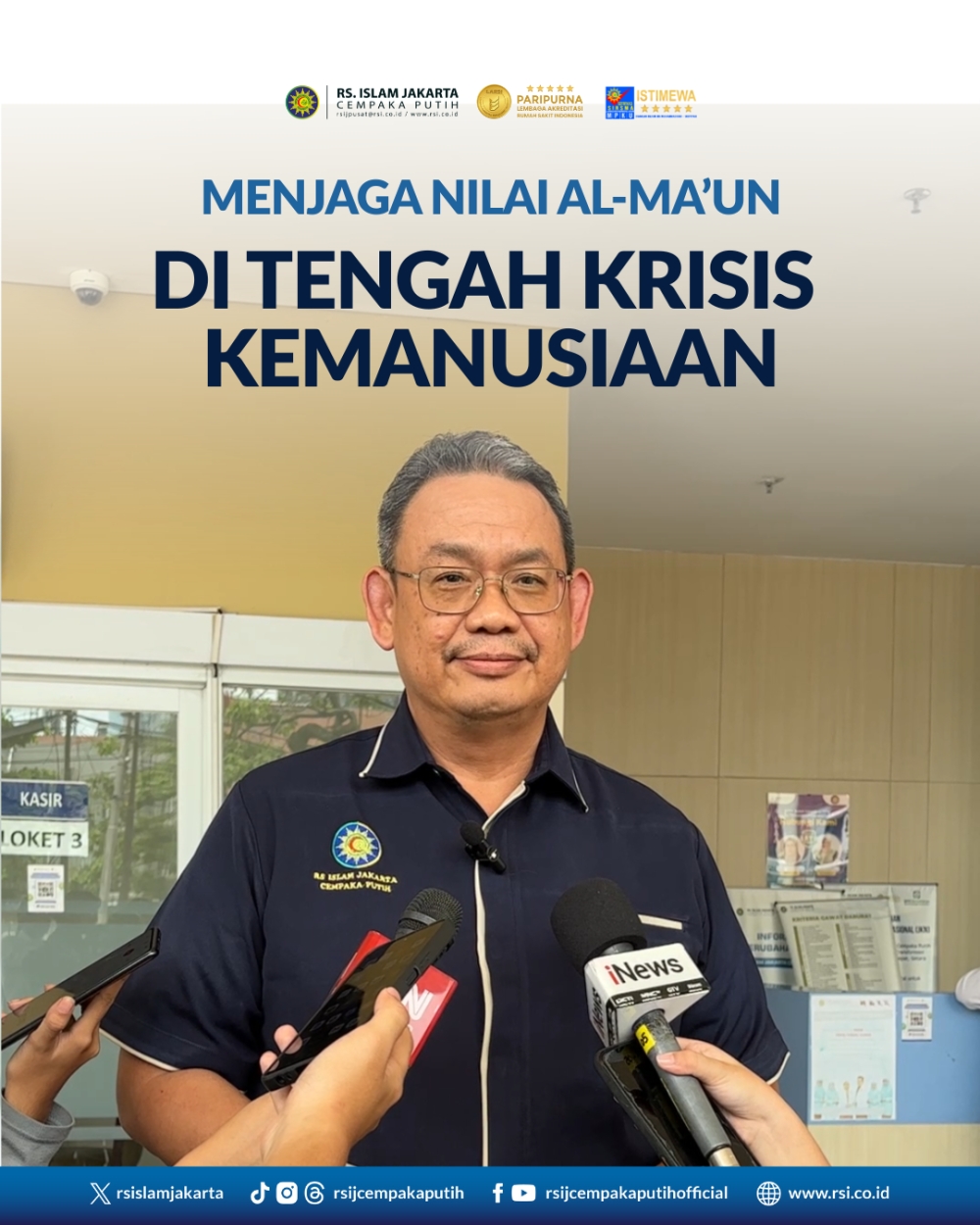 Nilai Al-Ma’un menjadi kompas yang membantu kami tetap tegak di tengah berbagai situasi, baik yang terlihat di depan mata maupun yang bergulir di dunia digital. Itu pula yang ingin terus kami jaga, agar pelayanan kesehatan di RS Islam Jakarta Cempaka Putih bukan hanya bermanfaat secara medis, tetapi juga menghadirkan ketenangan bagi semua yang datang.
