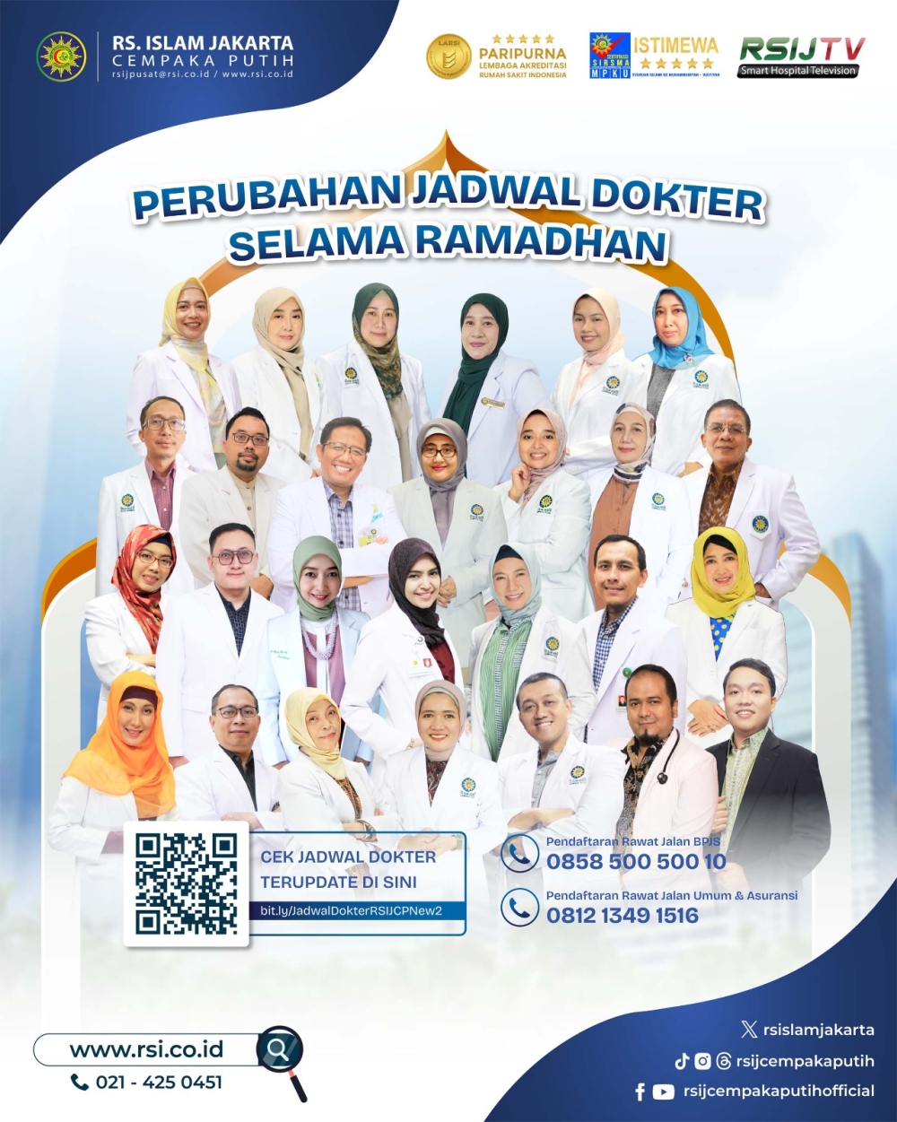 Layanan poliklinik rawat jalan kami mengalami beberapa penyesuaian jadwal praktik dokter selama bulan suci Ramadhan 1446 H yang sudah terangkum dalam postingan ini.