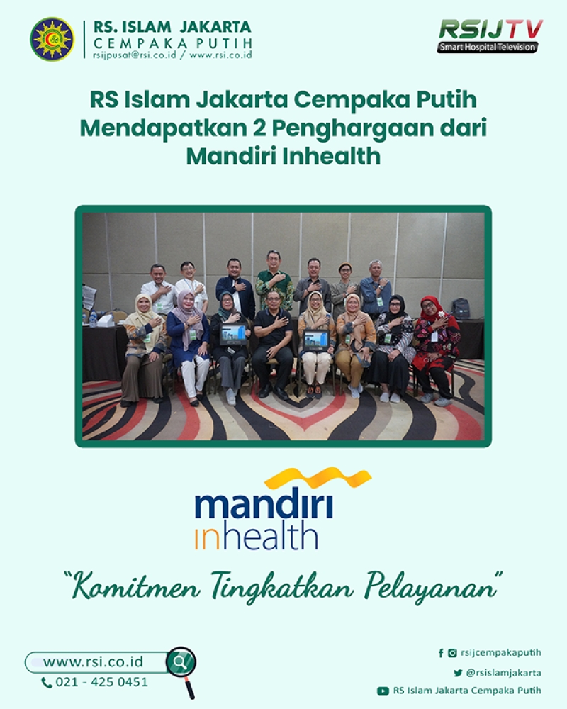 Komitmen RS Islam Jakarta Cempaka Putih untuk terus memberikan pelayanan yang prima kepada pelanggan, akhirnya membuahkan hasil. Hal ini tercermin setelah berhasil meraih 2 (dua) penghargaan sekaligus dalam kegiatan Customer & Provider Gathering Jabotabek yang digelar oleh Mandiri Inhealth di Hotel JS. Luwansa, Jakarta, Kamis, 19 Mei 2022. Penghargaan yang diraih adalah sebagai Provider Rumah Sakit dengan Kinerja terbaik di tahun 2021 dan provider rumah sakit patuh Formularium Obat Inhealth (FOI) Terbaik tahun 2021.