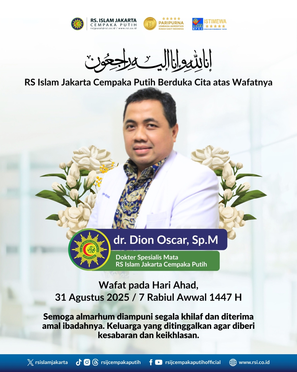 Dengan penuh duka cita, RS Islam Jakarta Cempaka Putih menyampaikan kabar berpulangnya: