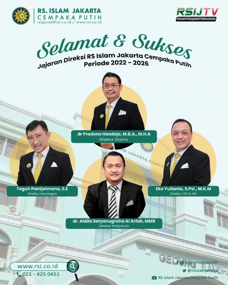 Seluruh civitas hospitalia RS Islam Jakarta Cempaka Putih mengucapkan selamat atas pelantikan direksi periode 2022 - 2026.